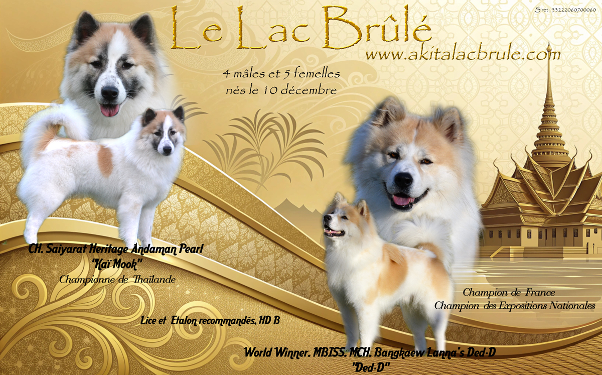 Le Bangkaew de Thaïlande est une race très rare en France, qui est réservée à des personnes initiées au primitif ou souhaitant le découvrir en toute humilité. Il a préservé son instinct sauvage et en fait un excellent gardien. Nos 2 Bangkaew ont été importé de Thaïlande, berceau de la race, de grandes lignées prestigieuses. Ded-d s'est très vite démarqué, comme un beau représentant de sa race en France, mais également lors de la Mondiale en Suisse, où il devient World Winner 2023 et gagne le meilleur de race. Kaï Mook, quant a elle, a obtenu son titre de Championne de Thaïlande lors de la plus grande exposition de Thaïlande à Bangkok, avant de nous rejoindre en France. |