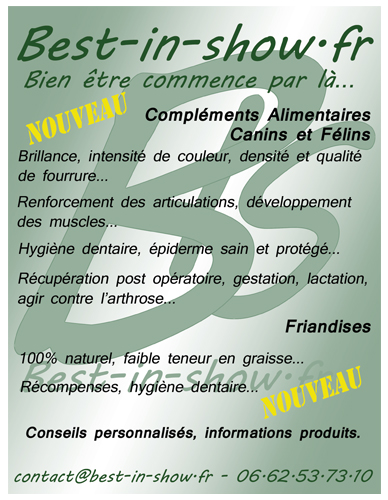 Septembre 2010 : - Ekinox fait le meilleur de race (bob) à l'exposition de Tarbes devant sa mère Ashka en classe champion.