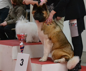 Cacib de Bilbao en Espagne : - Give Me the World du Lac Brûlé a fêté ses 15 mois, 4 jours avant l'exposition internationale d'Angers. L'occasion de tenter une première fois dans la classe des adultes, en intermédiaire (à partir de 15 mois), et de tenter le CACS et le CACIB. Mars 2013 : - Scrat (Mojo's What Else?) devient CHAMPION INTERNATIONAL grace à son dernier CACIB obtenu à l'Exposition Internationale de Périgueux. De plus, il se classe 3ème Meilleur de groupe (BOG3). - Multi Ch. Ashka of Sea Bird Sanctuary ne sortira qu'à une seule exposition cette année, et c'était à la fabuleuse exposition de CRUFTS en Angleterre, en classe vétéran. Pour la première fois de l'histoire, un Akita français, né en France, se classe ! Elle obtient la place de VHC "Very Highly Commended". - Pour l'exposition de Valence, la première sortie de Ghoover du Lac Brûlé, en adulte, en classe ouverte (alors qu'il aurait pu être en intermédiaire à seulement 19 mois), il gagne la 1ère place et le CACS devant Scrat (Mojo's What Else?) qui aura le RCACS. Give Me the World du Lac Brûlé remportera le Meilleur Jeune et sera sélectionnée dans les 5 meilleurs de groupe mais pas classée cette fois. Février 2013 : - Un excellent résultat pour Scrat (Mojo's What Else?) lors de l'exposition Internationale de Toulouse ! - Sous les jugements de Mme Melchior, juge Luxembourgeoise, à l'exposition Internationale de Bourges, Scrat (Mojo's What Else?) remporte le Meilleur de Race (1er Ex Cacs-Cacib-BOB). - 3 mâles sont nés du mariage Domino x Ch. Jonti ! Photos à 3 jours. Janvier 2013 : - Après avoir préparé Scrat et Ekinox, samedi avec la neige imprévue et 3°C au lieu des 12°C annoncé, le plus dur était de les garder propre jusqu'au lendemain avec toutes cette boue partout ! Heureusement dimanche à Perpignan, le soleil était présent :) - Scrat (Mojo's What Else?) monte sur le podium en Espagne, sur la 2ème marche pour le Best of Group. - L'année à peine commencée, et on reprends le rythme des expo ! - L'année commence avec une heureuse nouvelle, en effet, nous venons d'avoir la confirmation de la gestation de Domino, mariée au beau Ch. Jonti, début décembre. Les naissances sont prévues début février. Décembre 2012 : - Nous venons de faire le voyage en Angleterre avec "Domino" jusqu'au magnifique "Jonti" pour effectuer ce mariage tant attendu. Les saillies ont eu lieu, il faut maintenant attendre la confirmation de gestation vers début janvier ! Domino est la mère des très beaux Ghoover, Fyd'elle et Galaxy entre autres. Ch. Jonti "Nosferatu Kiking Up a Storm" a déjà produit de merveilleux chiots en Angleterre. - Nous étions présent à l'exposition Internationale du dimanche à Nantes : Novembre 2012 : - Cette fois à l'exposition Internationale de Castres, avec le trio Scrat et ses 2 filles, Give Me (10 mois et demi) et Hateya (9 mois et demi), ils n'ont pas fait moins que la semaine dernière. - Après un week end compliqué à Orléans, pour Give Me et Hateya, avec des appréhensions soudaines d'une première exposition en hall fermé et bruyant, voilà un retour fulgurent pour Give Me the World du Lac Brûlé à l'exposition Internationale de Tarbes ce dimanche. Octobre 2012 : - Ch. Ekinox du Lac Brûlé vient de terminer son championnat Suisse ce week end, elle devient donc Championne de Suisse !!! - Lors du double CACIB de l'Exposition Animalia de Lausanne en Suisse, Mojo's What Else? "Scrat" gagne sur les 2 jours les CAC, CACIB et Meilleur de Race. - Voilà 2 week end où les fils de Scrat (Mojo's What Else?) se démarquent. Septembre 2012 : - Sous les jugements de Mme Cibot à la Spéciale de Race de Beauvais, Scrat (Mojo's What Else?) gagne la Réserve de CACS et de CACIB. - Double "Best of Group" pour Mojo's What Else? "Scrat" et son fils Gulliver Only Boy du Lac Brûlé lors de l'exposition de Sorges en Périgord. Aout 2012 : - Tyler (Jarsdann Raising the Roof at Bellicose) n'a pas pu résister au charme de Scrat (Mojo's What Else?) par une belle soirée d'été, ce qui annonce des bébés pour l'automne. Nous avons donc, le plaisir de pouvoir confirmer la gestation de Tyler, naissances prévues début octobre ! - Bravo à Linda (Elevage du Grain de Beauté) qui a de nouveau emmené Go Even Further du Lac Brûlé (Scrat x Ch. Ekinox) sur les marches du podium du Best in Show Puppy de l'exposition Nationale de Loison Sous Lens. - Pendant que Give Me the World du Lac Brûlé (Très Prometteur et Best Puppy) et Satrebor Roulette dite Crunchie (2ème Ex. RCacs) se concentraient sur leurs statiques à l'exposition Nationale de Chateau Gontier, Ch. Ekinox du lac Brûlé et Hateya du Lac Brûlé pataugeaient gaiement dans la Dordogne ! Mais ne seraient-elles pas prêté leurs filles respectives en plus ? - Une journée très agréable à l'exposition internationale de Brive la Gaillarde, en compagnie de nos amis, Valérie, Magali, et Florence, Georges et leurs enfants, ainsi que la tribu de toutous. Fyd'elle du Lac Brûlé (2 ans), Gulliver Only Boy du Lac Brûlé et Give Me the World du Lac Brûlé (7 mois) et Hateya du Lac Brulé (6 mois) se sont dignement classés 3ème Meilleur lot d'affixe de l'exposition ! - Première exposition à Cahors pour Hateya du Lac Brûlé (Crunchie x Scrat) à tout juste 6 mois, accompagnée de sa demi soeur Give Me the World du Lac Brûlé (Ekinox x Scrat), 7 mois. Pas de classement, ni de ring d'honneur prévu pour les Puppy à cette exposition, elles seront toutes les deux "Très Prometteur" accompagnées d'excellents commentaires de la part du juge. - Les bébés "Lac Brûlé" et leurs maitres ont brillé ce week end aux expositions de Biganos et du Puy en Velay.